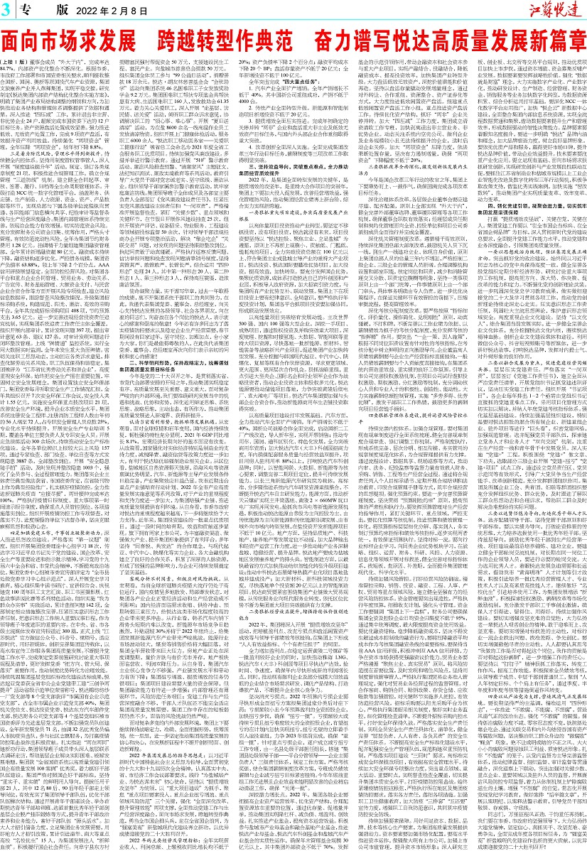 2月28日,集團在鹽召開安全環(huán)保與生產(chǎn)經(jīng)營工作會議,動員集團上下以高度的緊迫感和責任感,扎實推進安全環(huán)保各項工作,奮力沖刺首季“開門紅”目標任務。集團黨委書記、董事長張乃文主持會議并講話。會議強調,要一著不讓抓好安全環(huán)保工作。要充分提高思想認識,深刻汲取近期各類安全事故的沉痛教訓,以“四不兩直”方式深入一線開展安全檢查,確保各項安全措施落到實處、見到實效。要緊扣關鍵環(huán)節(jié)、重點領域和重要場所,實施更加精準有效的管控,切實提高第三方安全檢查質量,做到排查無死角、監(jiān)管全覆蓋。要壓緊壓實主體責任 ...