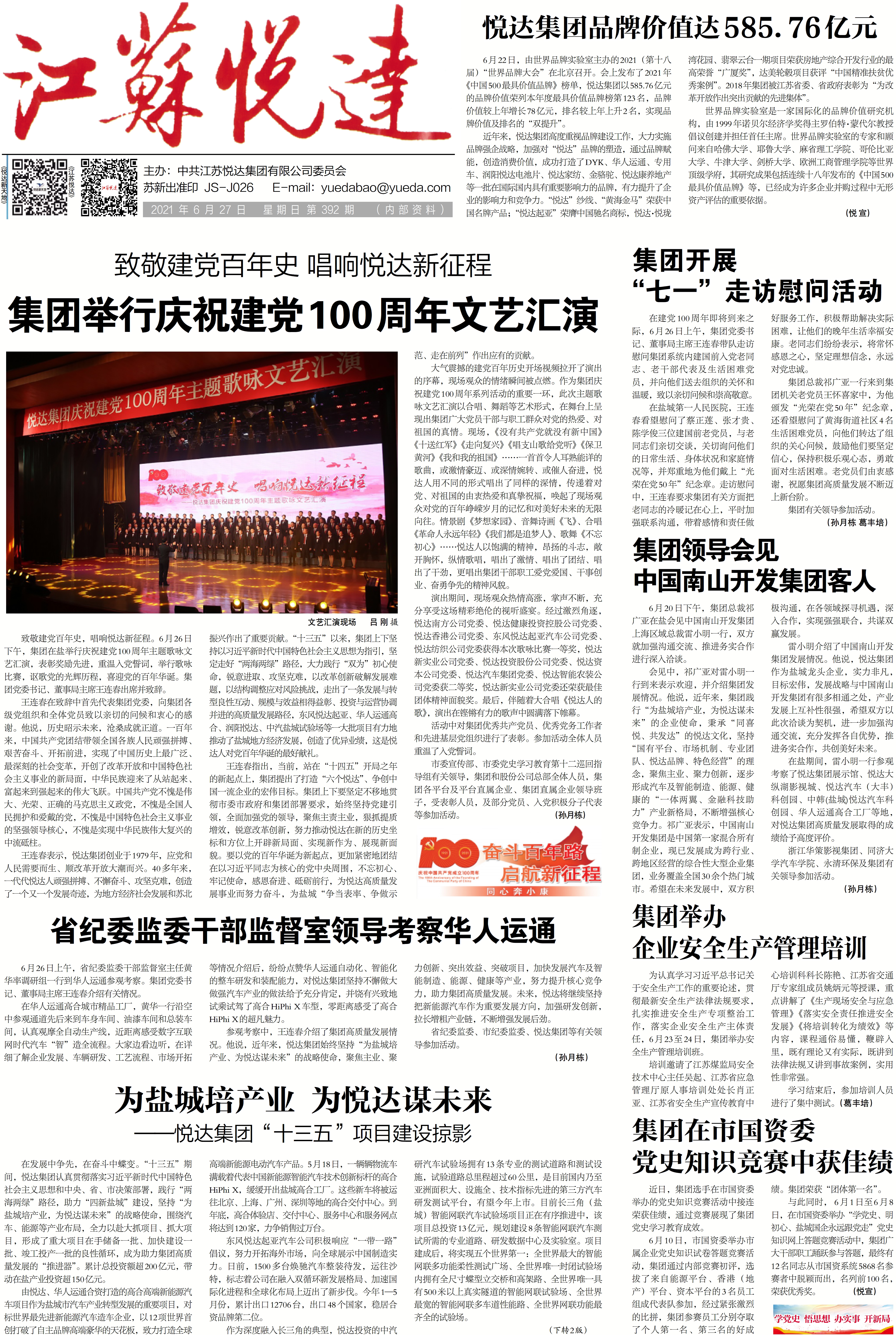 江蘇悅達(dá)集團(tuán)有限公司創(chuàng)立于1979年,創(chuàng)業(yè)40多年來(lái),始終堅(jiān)持服務(wù)鹽城經(jīng)濟(jì)社會(huì)發(fā)展不動(dòng)搖,始終堅(jiān)守實(shí)體經(jīng)濟(jì),成為全省重點(diǎn)國(guó)有骨干企業(yè)。榮獲“全國(guó)先進(jìn)基層黨組織”“中華慈善獎(jiǎng)”“為改革開(kāi)放作出突出貢獻(xiàn)的先進(jìn)集體”等榮譽(yù)稱(chēng)號(hào)。